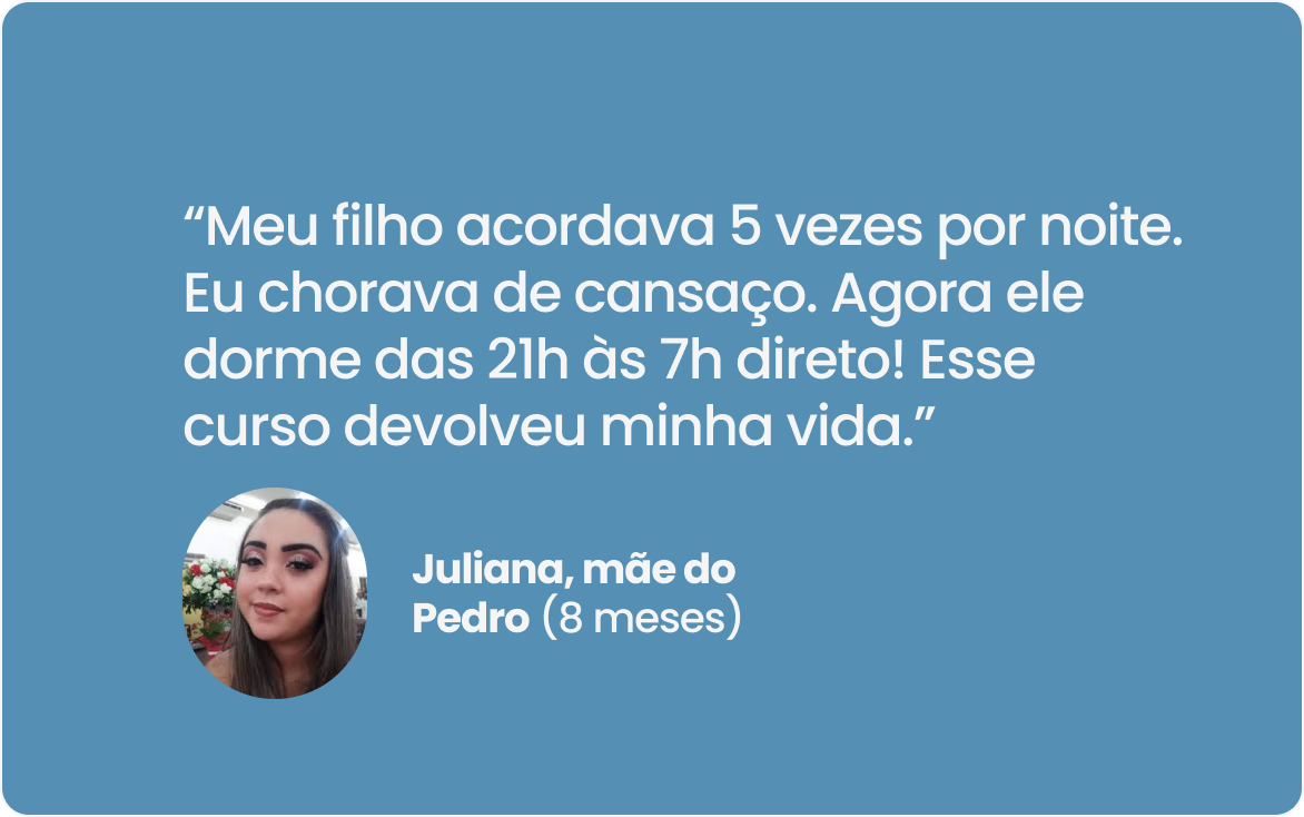 Unindo experiência pessoal, estudo contínuo e dedicação, transformei essa vivência em um método seguro, eficaz e direto, que já vem ajudando mães e pais a conquistarem noites de sono tranquilas e restauradoras — exatamente como eles e seus bebês merecem.